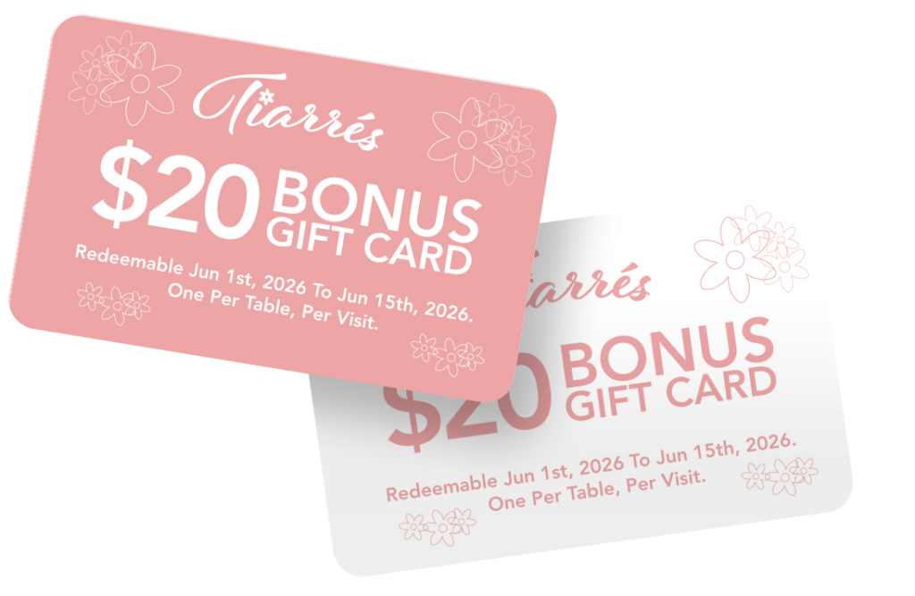 With the purchase of any $100 Tiarré’s Gift Card